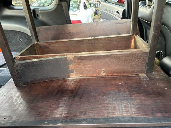 Wood Gateleg Table w wooden dovetails hinges. Hand planed. Hard wood. Type? 28” high, 42” long, 14 1/2” each leaf. Top plank is 17”. My guess is 1800. Call/text and leave message Cash and carry only...